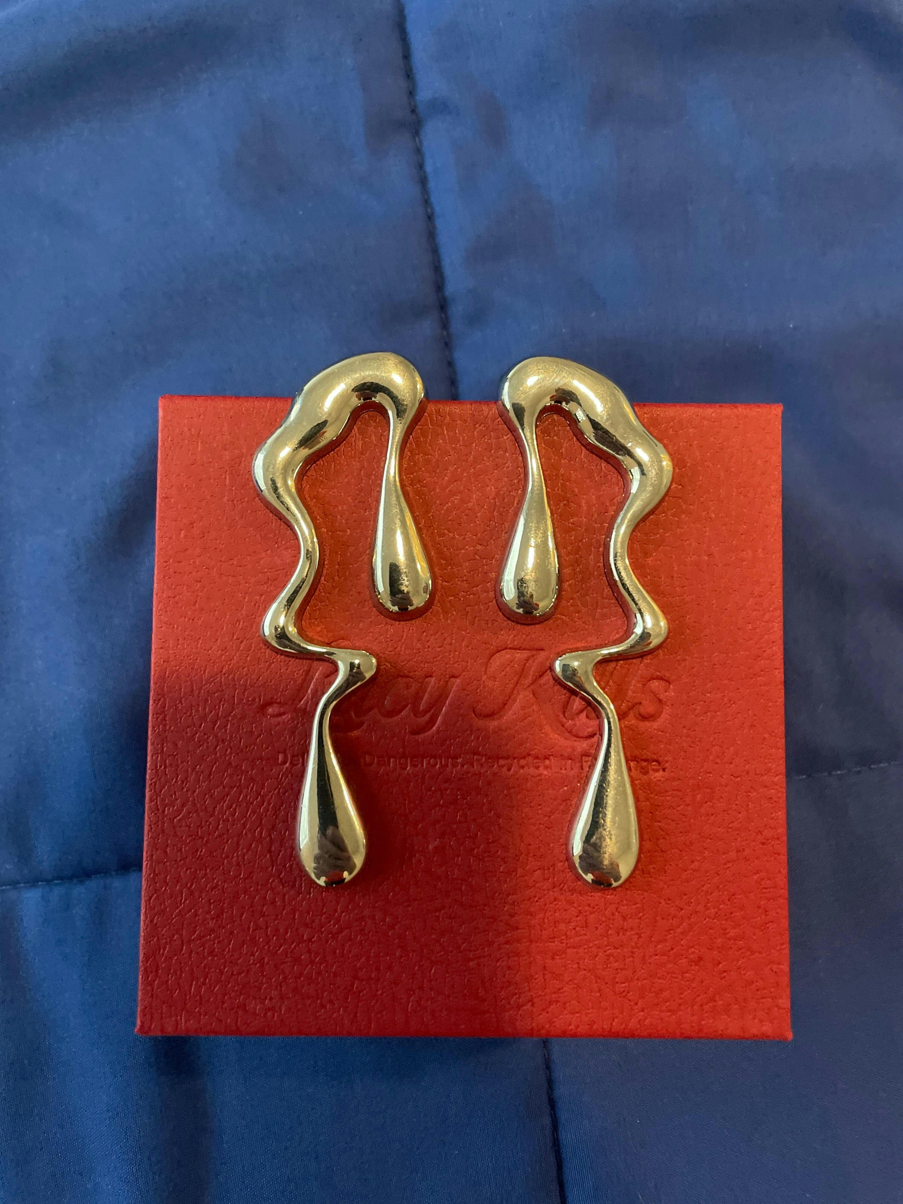 You weren’t cold, you were overheating. These glossy, liquid-style Solar Spill Earrings look like they were left out in the sun too long because you were. They’re shiny and unapologetically dripping hot. Chrome cry energy that's perfect for a cosmic ecosystem meltdown.