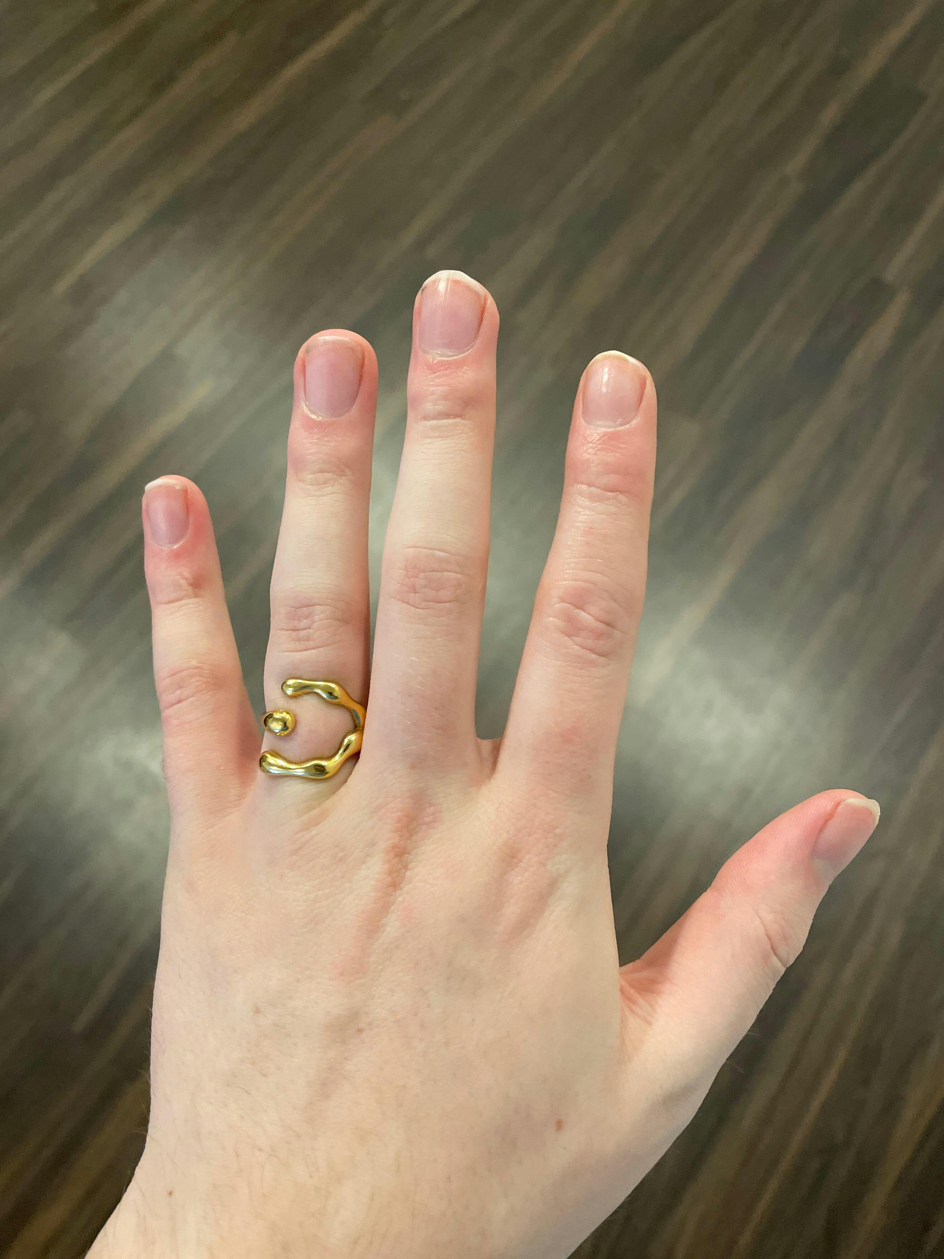 Crafted from an 18k fever dream and melted into form, this statement Claw Theory Ring grips with alien precision. It's sculpted, talon-like band and high-polish gold finish give it the look of a cosmic relic that's built to endure. Warped as if it clawed its way out of an interstellar crash.